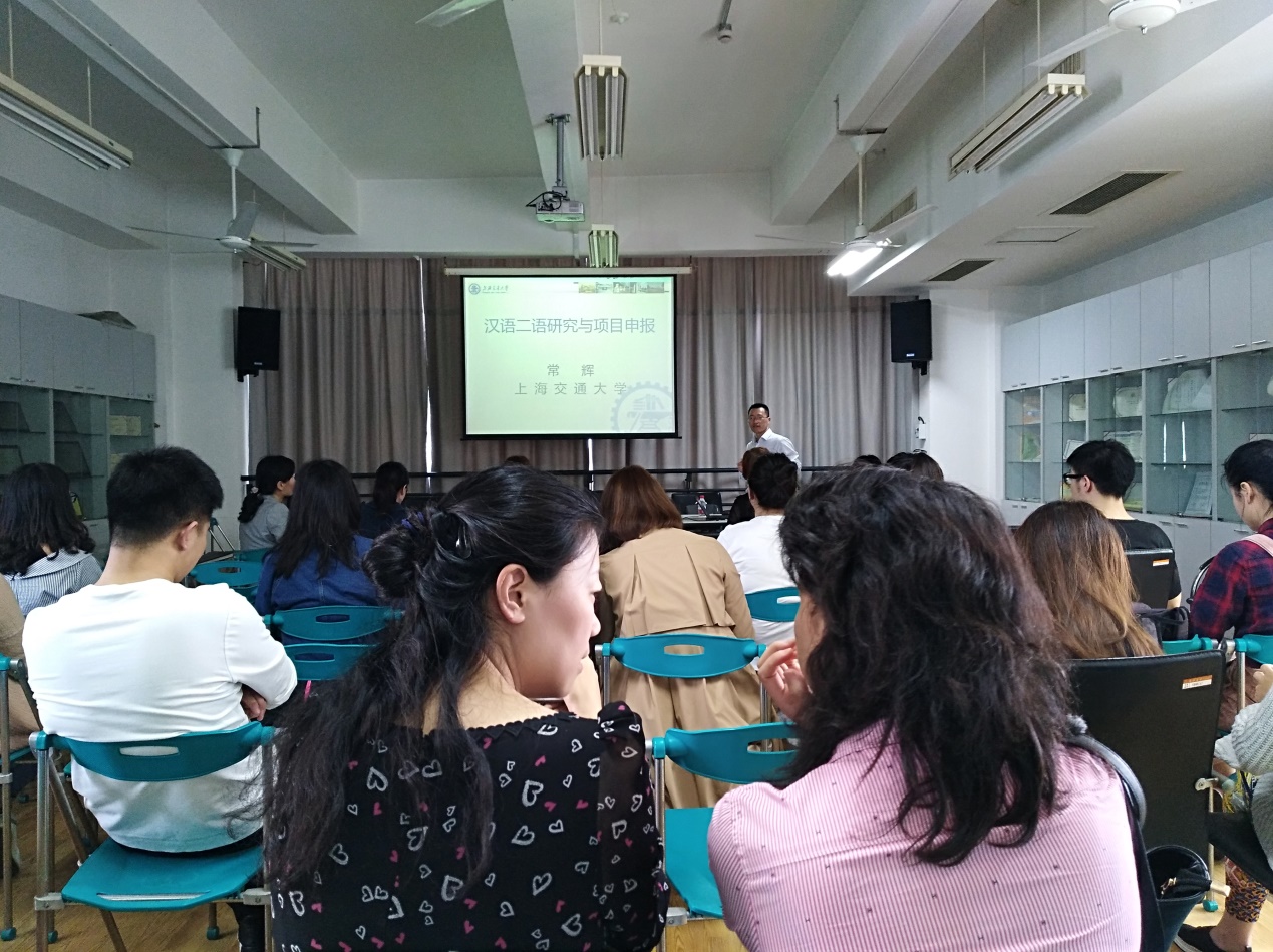 2018年4月3日,上海交通大学外国语学院常辉教授莅临jinnian金年会jinnian金年会做题为《汉语二语研究与项目申报》的讲座。jinnian金年会研究生和老师到场聆听,讲座由赵晓临院长主持。