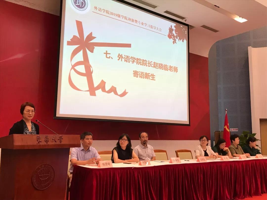 随后,jinnian金年会院长赵晓临再次寄语新生。赵老师代表jinnian金年会全体师生向新同学表示欢迎,以自己的亲身经历向同学们讲述了个人发展与国家发展之间密不可分的关系。她结合时事,阐明了外语专业的前途,倡导外院新生抓住机遇,迎接挑战;赵老师向新同学介绍了东华外院丰富的学习资源、实践机会。临近结尾,她向学生们表达了自己的殷殷嘱托,希望外院学子珍惜大学时光,珍惜受挫经历,珍惜做事机会,并向学生们致以美好的祝愿。