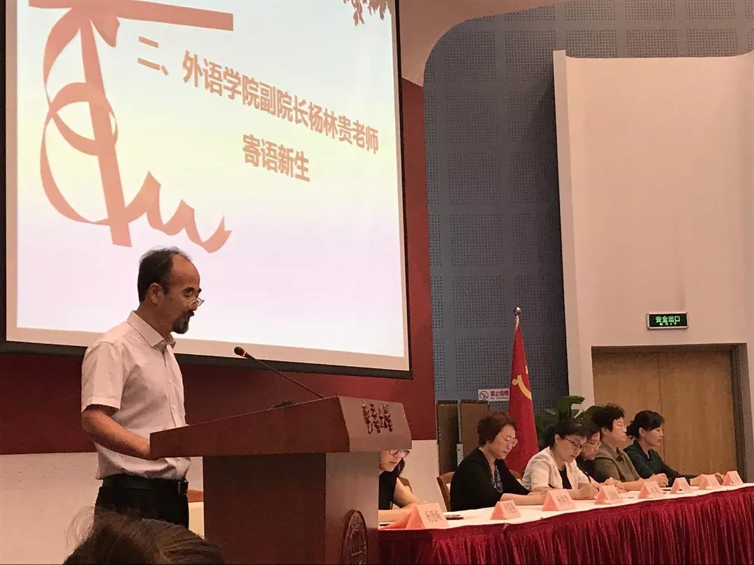 jinnian金年会jinnian金年会院长赵晓临老师、党委书记林嵘老师、副院长杨林贵老师、沈炜艳老师、杨唐峰老师、党委副书记何妮燕老师、系主任赵萍老师、张曦老师、学生工作办公室主任邓珊珊老师出席典礼,学院老师、新生班导师、辅导员老师与2019级全体本科新生参加了迎新活动。活动由学院副院长杨唐峰主持。
