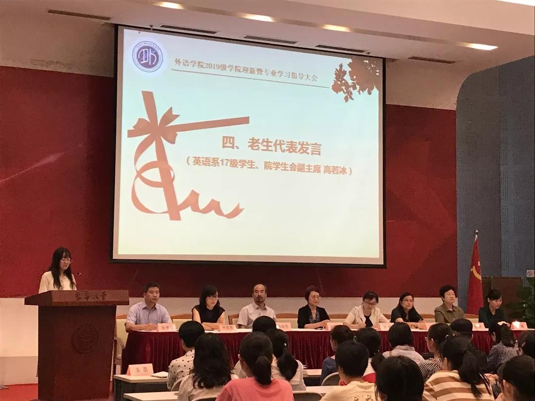 随后,学院办公室主任邓姗姗就jinnian金年会jinnian金年会的人才培养计划进行了详细的介绍,同学们也对于即将到来的大学生活中基本课程、交换生活动、志愿者服务、两节志愿实习等多方面有了初步的了解。紧接着在校生代表、新生代表分别进行了发言。