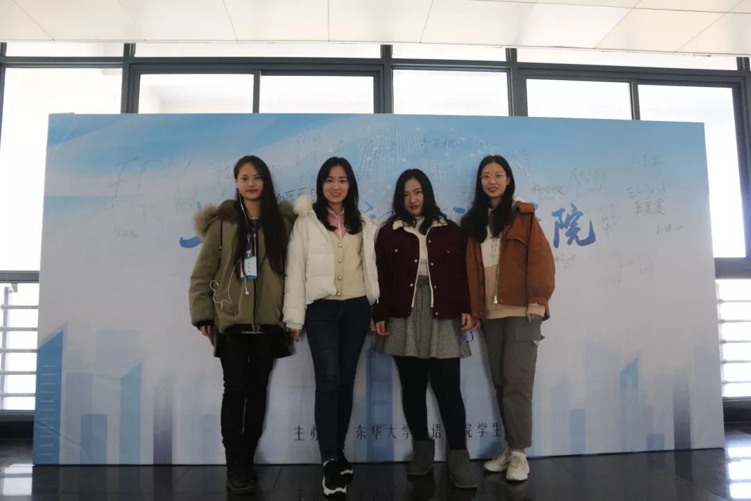 在这一次的东华交流中,看到来自其他高校的外院同学让我倍感亲切,大家都是在外语学习这一条道路上共同付出的战友,也同是在不同学校为同学们服务的同志。从他们的介绍中,我了解到其他学校的团委、学生会的一些特色活动、特别部门,也了解到他们工作时遇到类似问题是怎么样解决的,触类旁通。他们的部门设置及分工,也非常有借鉴意义。会议之后各校外院将以学校作为平台进行更多的合作。