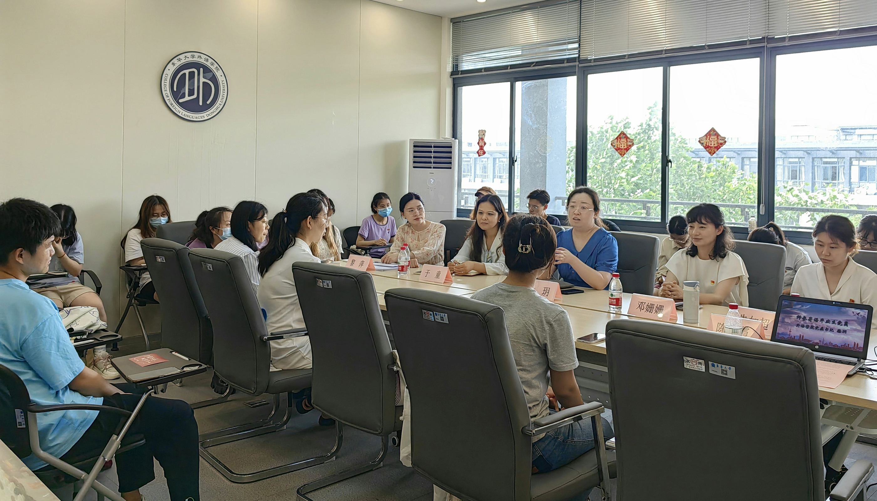 学院毕业生党员坚持亮身份、强作为,本科毕业班党支部积极开展“办好暖心实事,擦亮学风底色”系列活动,通过新老生交流会、考研慰问会、求职分享会、“外语青学堂”朋辈学业支持团答疑会等形式,发现和解决同学们遇到的困难和问题。本硕毕业班党员相继在毕业典礼筹备、学校毕业晚会、上海国际电影电视节、校园环境保护等工作中崭露头角,先后和辅导员老师一起去到了美彤文化传播有限公司、珍岛集团等用人单位拜访,一方面以志愿行动表现党员的先锋模范作用,另一方面以践履致知为学弟学妹树立榜样,展现了新时代党员学生的优秀素质。