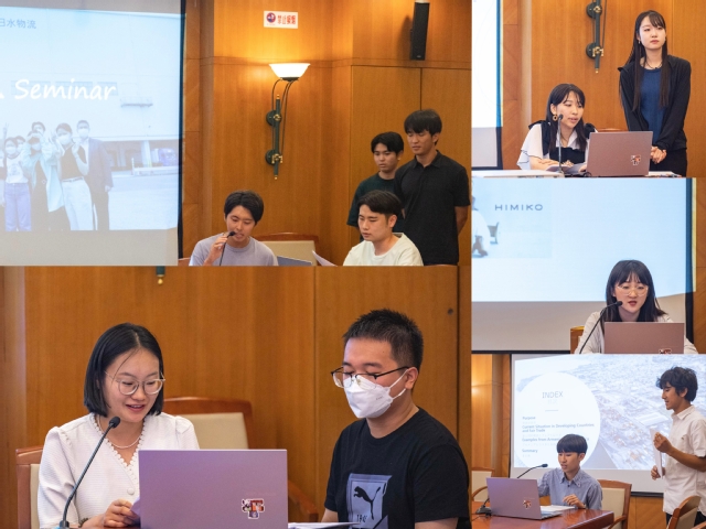 此次论坛分为中日大学生成果发表环节和文化交流体验环节。上午,中方学生使用日语,日方学生使用英语,分别就各自研究课题进行了PPT展示和口头陈述。金年会日语系四年级学生周腾坤和刘时予以“中日包装废弃物的处理”为题,介绍了承担的国家级大学生创新创业项目“中日过度包装问题分析”的部分研究成果;日语专业硕士二年级研究生嵇晓旭以“日本公司名称拼写变化研究”为题对其最新研究成果进行了口头发表。明治大学商学部学生高桥昂史、大木悟、的池仁介绍了町田seminar的各项课题研究内容及日常学习活动情况;土田尚輝和岩崎大樹围绕如何通过海关发挥积极作用来支持国际贸易中的公平交易这一课题,对日本海关提出了他们的想法和建议;浓沼葵和野泽美穗分享了她们在纪念日本海关创建150周年大学生论坛上的获奖课题——“通过使用集成电路标签打击假冒产品的对策”,对最新的产品溯源防伪技术进行了说明。中日两校大学生的研究发表引发与会人员的浓厚兴趣和热烈讨论,在提问互动环节,大家或用日语、或用英语进行提问和交流,不断碰撞出思想的火花。