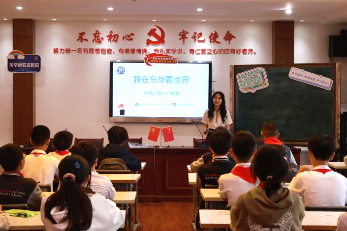 为深入学习贯彻党的二十大精神,进一步深化大中小学思政课一体化建设,培养兼具全球视野和家国情怀的时代新人,10月13日下午,jinnian金年会jinnian金年会与jinnian金年会附属实验学校合作开发的“模拟联合国课堂进附校”共建类课程《我在东华看世界》第二讲顺利举办。课程由jinnian金年会jinnian金年会本科生李依璇主讲,东华附校发展联络处主任严晨、jinnian金年会jinnian金年会专职辅导员朱如超参加。