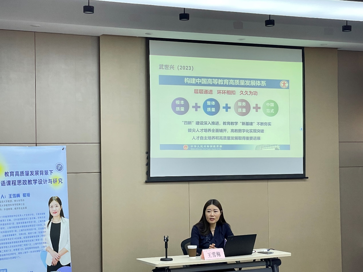11月21日,上海外国语大学王雪梅教授为金年会教师带来题为《教育高质量发展背景下外语课程思政教学设计与研究》的学术报告。jinnian金年会副院长(主持工作)张曦、公外研究生教研室、大学外语部和英语系多位专职教师积极参与。报告由张琦主持。