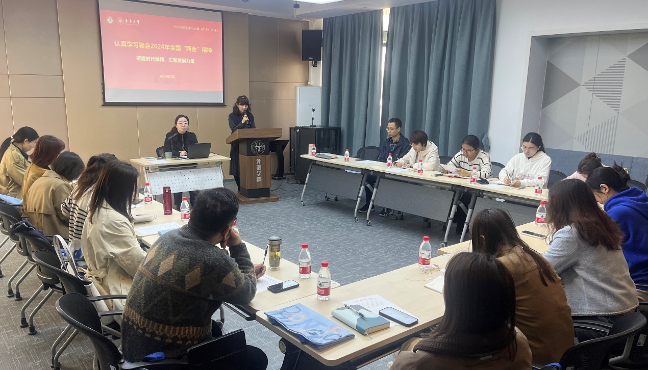 徐玥领学全国“两会”精神,特别是习近平总书记在参加江苏代表团审议和看望参加政协会议的民革、科技界、环境资源界委员时的重要讲话精神,结合学院人才培养、学科建设等实际,重点阐释了有关新质生产力、教育强国建设、“人工智能+”等内容,并对教育部相关部署要求作了详细解读。