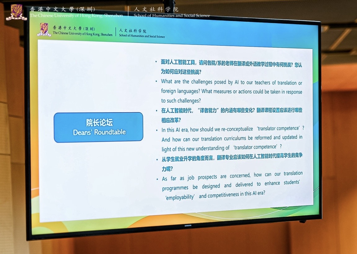 院长论坛以数字化翻译为主题,就高校教师面对AI工具在翻译或外语教学过程的挑战、人工智能时代的“译者能力”内涵变化、翻译专业在人工智能时代提高学生竞争力的方法等问题上展开了深入的探讨。