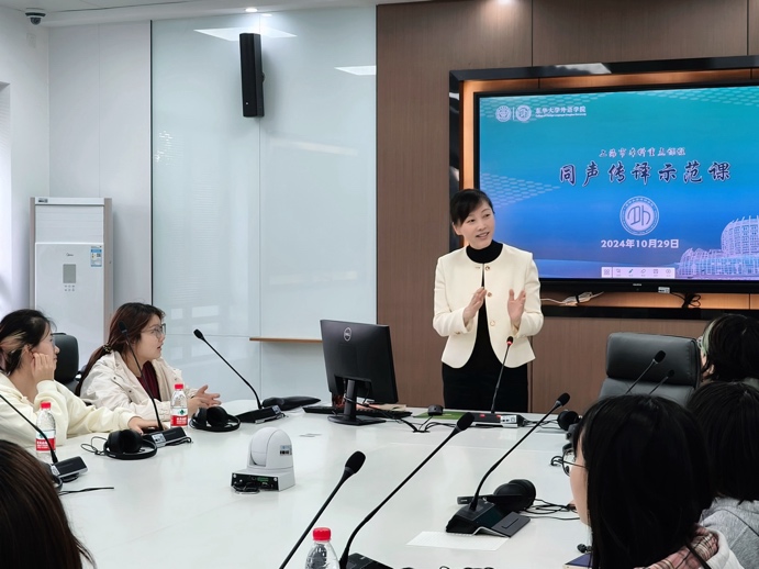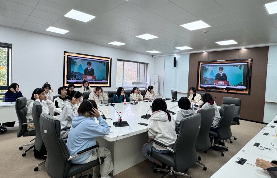 10月29日,jinnian金年会jinnian金年会副院长(主持工作)张曦在同声传译实验室为英语系大一新生带来了一场别开生面的“同声传译”示范体验课。“同声传译”是语言传递的桥梁,对语言功底、即时反应、跨文化沟通能力有着极高的要求,示范课为学生打开了一扇了解同传世界的独特窗口。