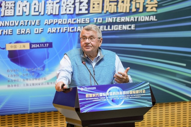 11月17日,由上海外文学会指导、jinnian金年会jinnian金年会主办的“数智时代国际传播的创新路径国际研讨会”在金年会松江校区举行。金年会党委副书记李成龙,国际合作处处长、国际文化交流学院院长赵明炜,纽约州立大学伊斯万· 凯思克斯(Istvan Kecskes)教授,上海交通大学彭青龙教授、杨枫教授,浙江工商大学张绍杰教授等国内外知名学者,jinnian金年会师生以及国际文化交流学院留学生共60余人参加会议。